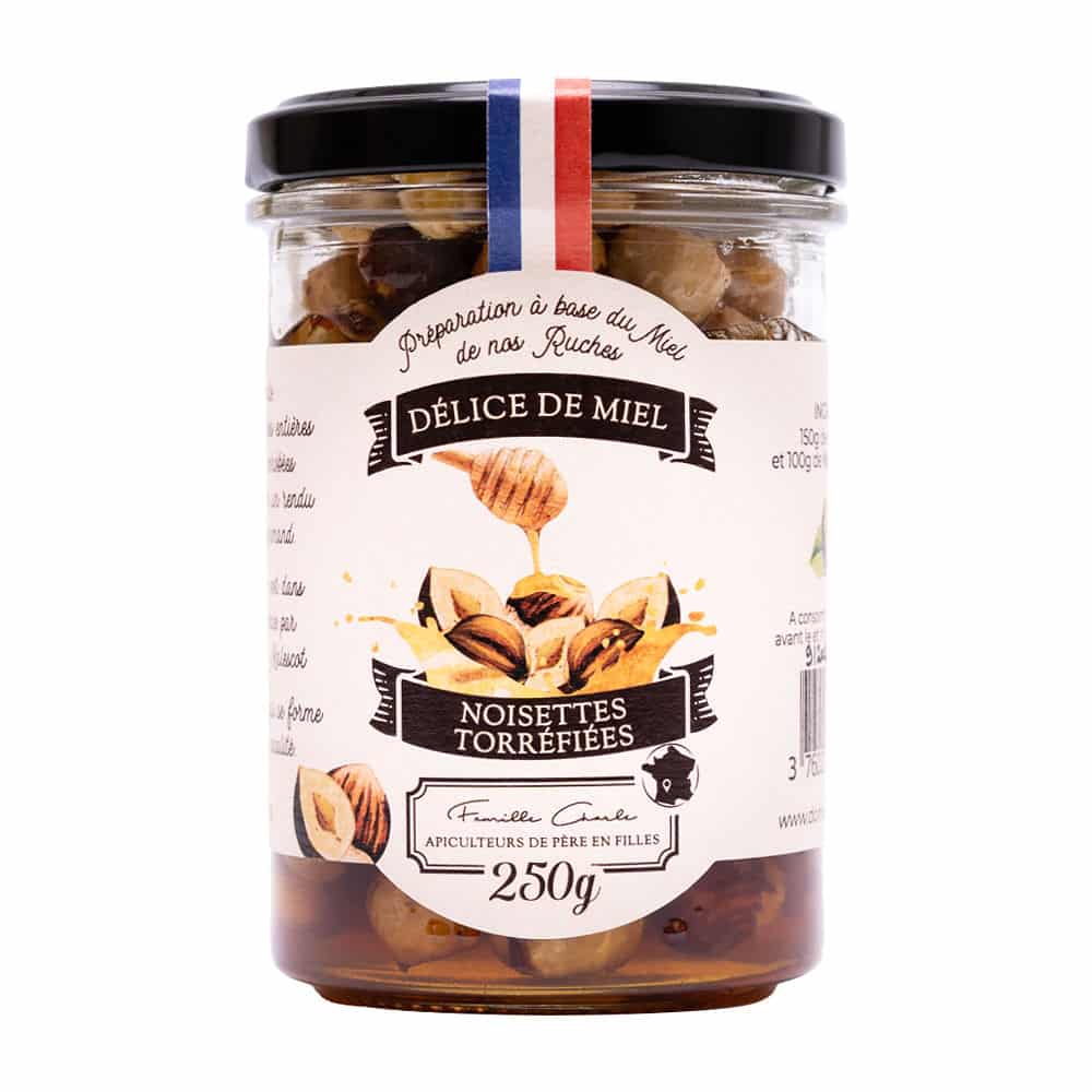 Découvrez nos Délices de Miel : La rencontre entre les Noisettes Torréfiées et notre Miel d’Acacia.