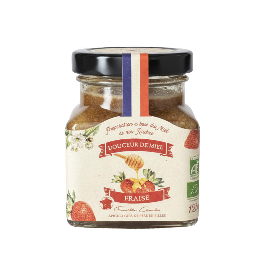 Ingrédients : 242g Miel (France), 8g Fraise (UE)