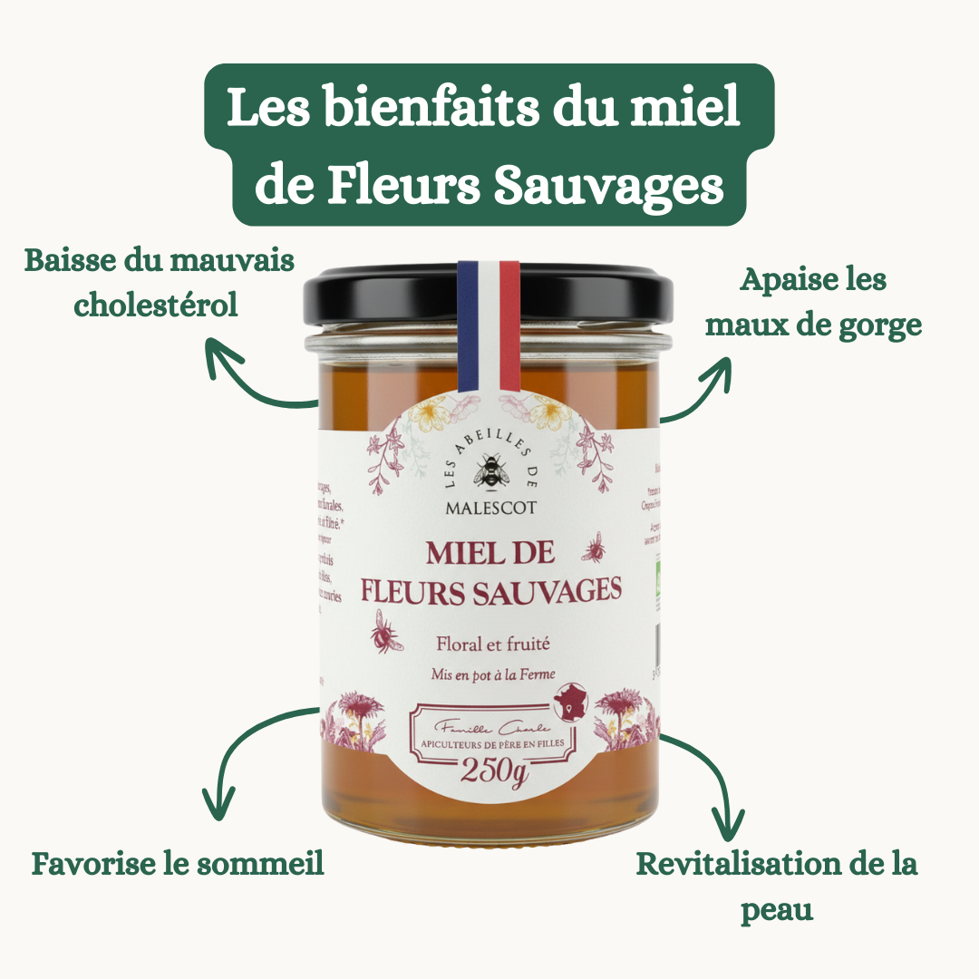 Découvrez notre Miel de Fleurs Sauvages, un trésor naturel issu des prairies préservées de Nouvelle-Aquitaine. Récolté avec soin, ce miel offre un goût floral et délicatement équilibré, reflet d’un butinage varié sur une flore riche et sauvage.🌸