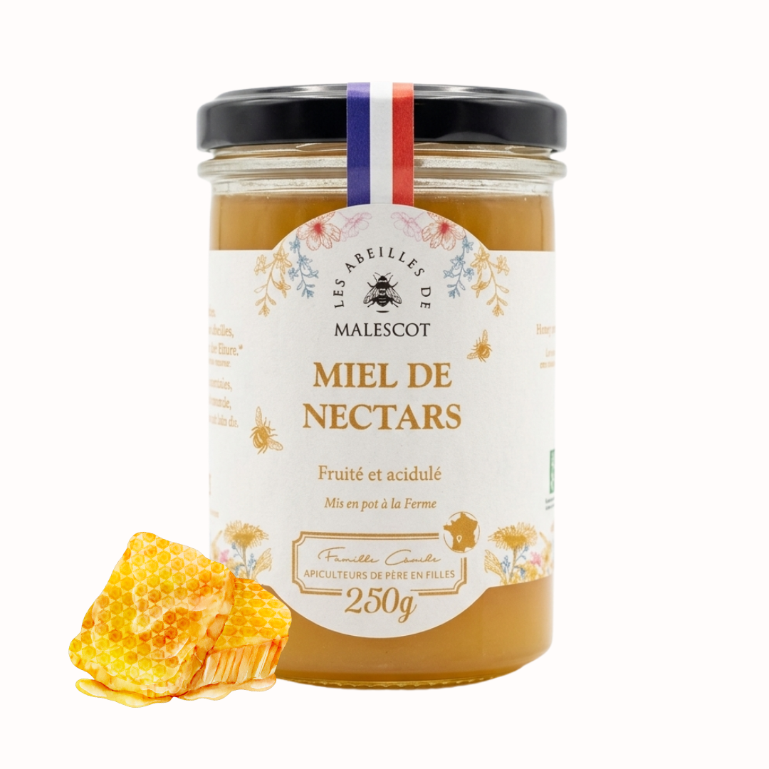 Fruitรฉ et acidulรฉ notre Miel de Nectars bio est issu des ruches de notre exploitation familiale.