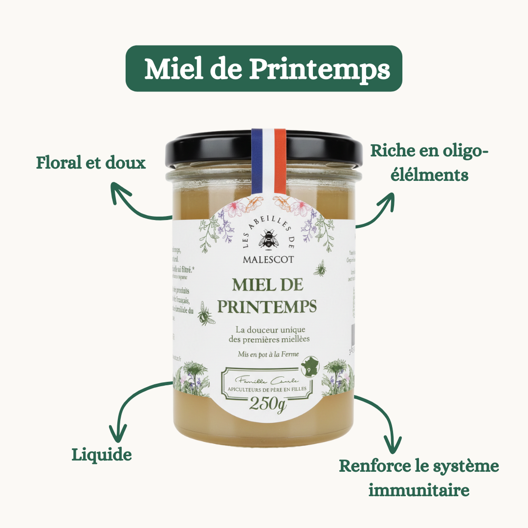 Les appellations de miel sont contrôlées et dépende de la composition de ces derniers. Notre Miel de Printemps bio est issu des premières miellées issues d'un rucher du Marais Poitevin. Nous travaillons avec un apiculteur qui partage nos valeurs et la même passion : une apiculture raisonnée, respectueuse des abeilles et de leur rythme.
