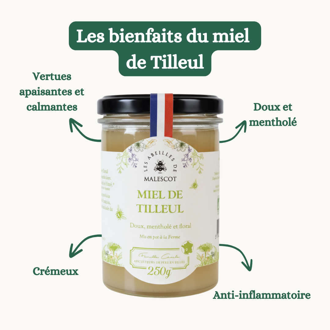 Plongez dans la délicatesse du miel de Tilleul, un nectar rare récolté en Dordogne, réputé pour ses notes mentholées et rafraîchissantes. Son goût à la fois doux et intense, en fait un miel d’exception apprécié pour ses arômes apaisants et sa texture onctueuse.