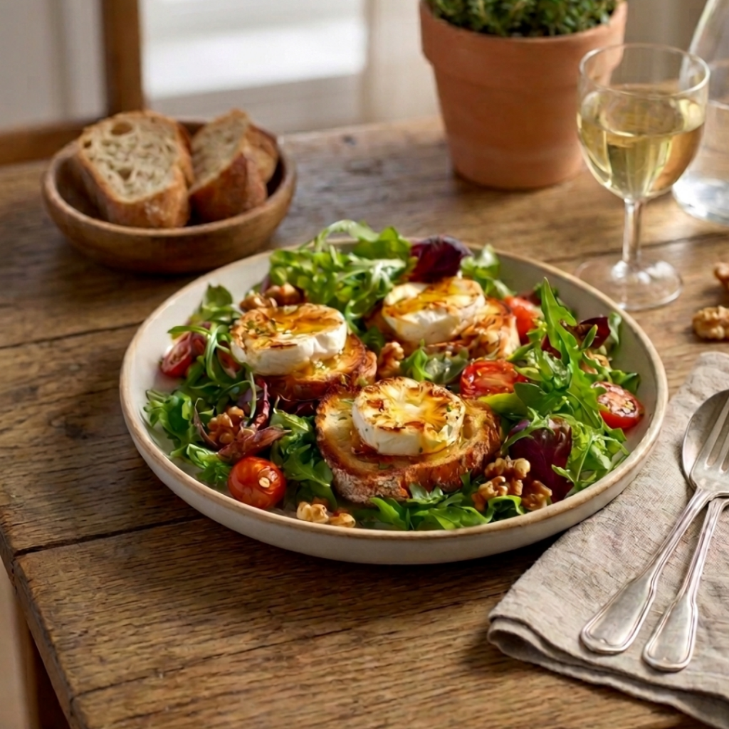 Cette salade de chèvre chaud utilise des produits simples, souvent issus de nos producteurs locaux, pour offrir un moment de partage et de convivialité.